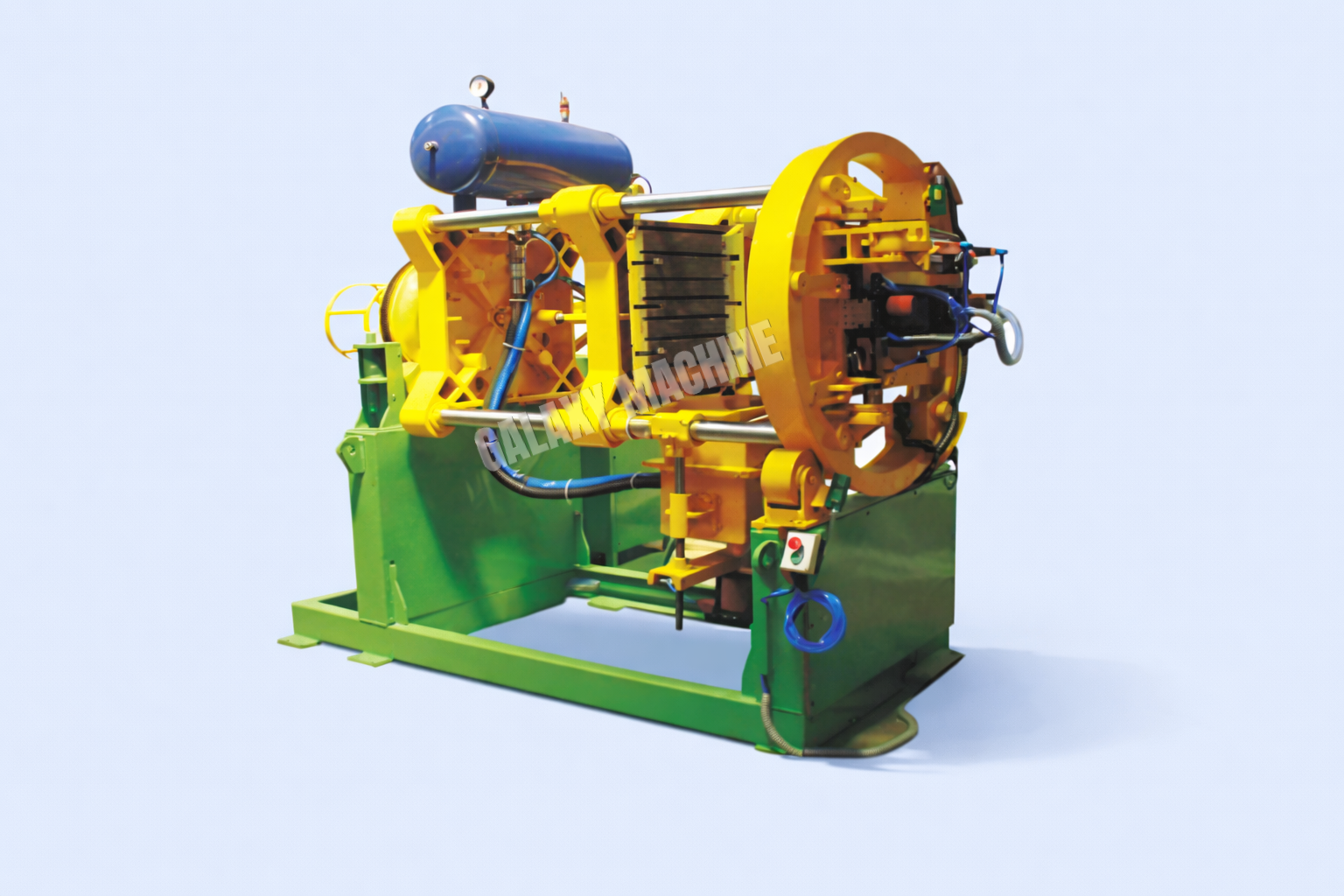 Shell core shooters are used particularly to manufacture smaller cores with intricate design and thin walls. The process uses resin coated sand that solidifies when exposed to heat. The resulting cores have high psi strength. The heating can be done by electric or gas fuelled heaters. Galaxy manufactures fully automatic shell core shooters suitable to produce cores with vertical and horizontal parted core boxes. Both pneumatic and hydraulic models are available with auto ejection mechanism for cores. Our machines are suitable to mount multi-cavity core boxes thus producing multiple cores in a single cycle. The machine cycle is controlled by means of a PLC with display unit. Safety interlocks and fault diagnostics are provided to ensure both machine and human safety.